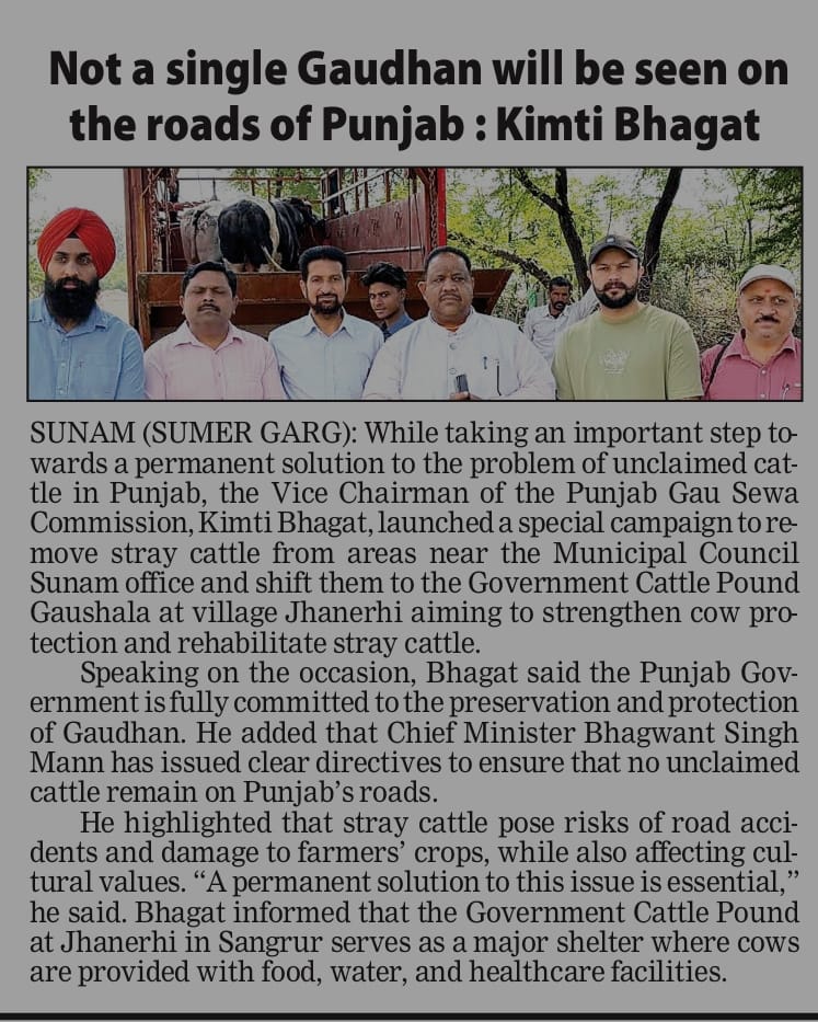 ਪੰਜਾਬ ਗਊ ਸੇਵਾ ਕਮਿਸ਼ਨ ਵਲੋਂ ਬੇਸਹਾਰਾ ਗਊਧਨ ਦੀ ਭਲਾਈ ਲਈ ਰਾਜ ਭਰ ਚ ਲਾਏ ਜਾਣ ਵਾਲੇ ਵਿਸ਼ੇਸ਼ ਕੈਂਪਾਂ ਦਾ ਅੱਜ ਪਟਿਆਲਾ...