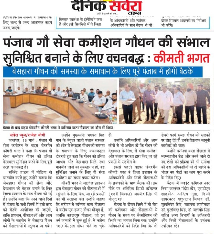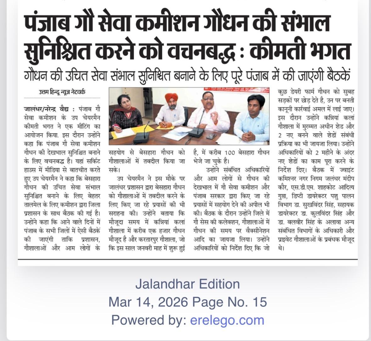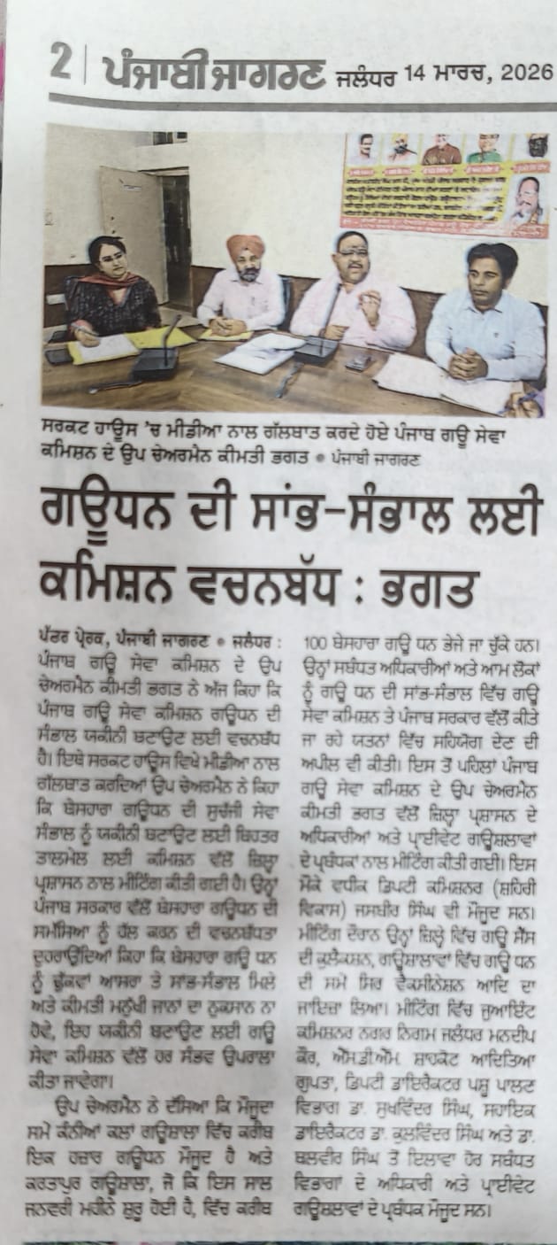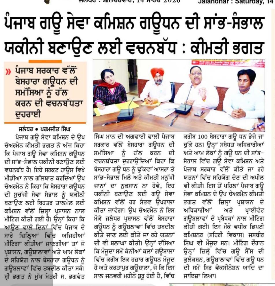 ਉਪ ਚੇਅਰਮੈਨ ਕੀਮਤੀ ਭਗਤ ਜੀ ਵੱਲੋ ਗਊਧੰਨ ਦੀ ਸੇਵਾ ਸੰਭਾਲ ਅਤੇ ਸੁਰੱਖਿਆ ਅਤੇ ਜਿਲ੍ਹਾ ਜਲੰਧਰ ਦੇ ਕੈਟਲ ਪਾਊਂਡ ਸਰਕਾਰੀ ਗਉਸ਼ਾਲਾ ਦਾ ਦੌਰਾ ਕਰਨ ਸਬੰਧੀ।