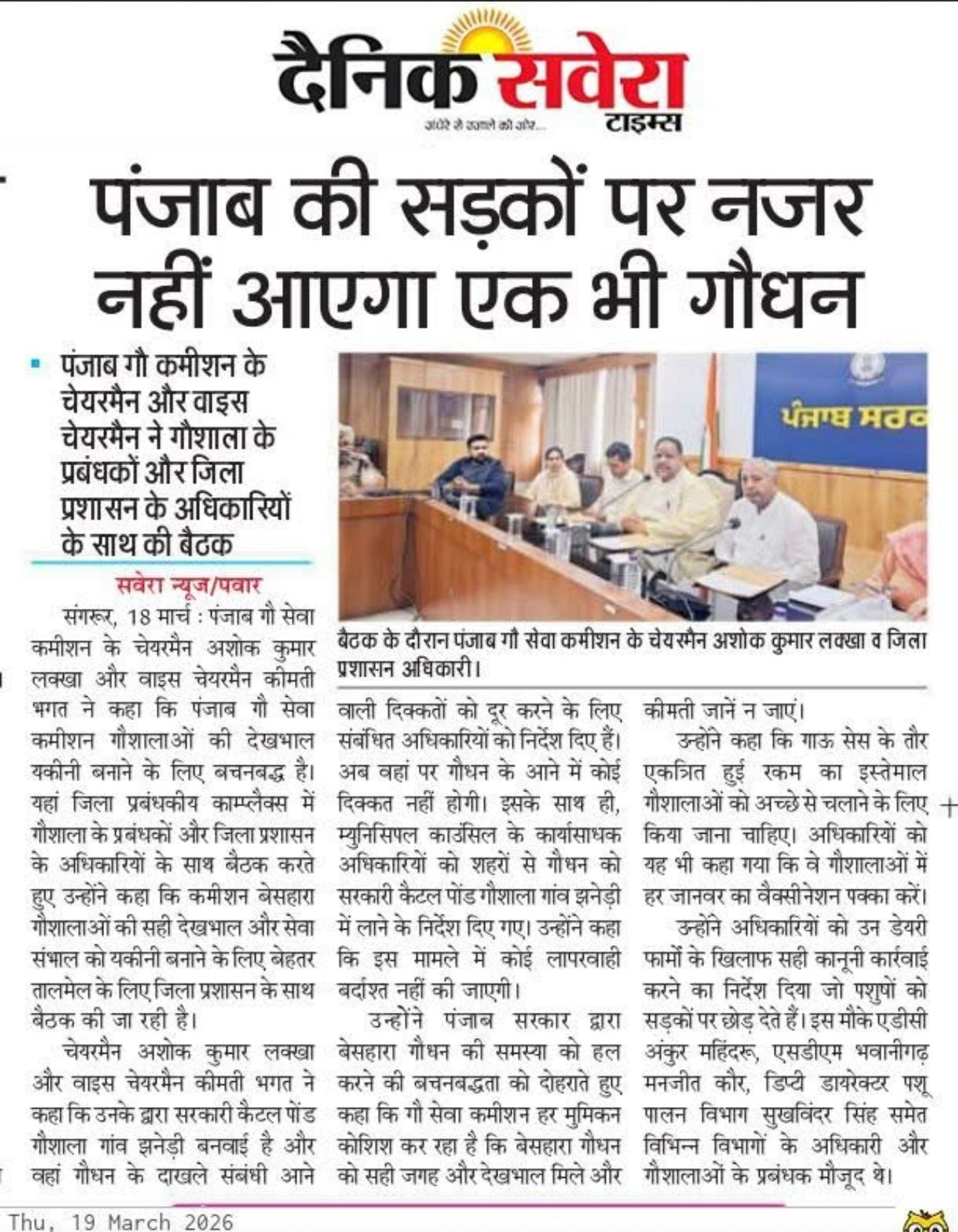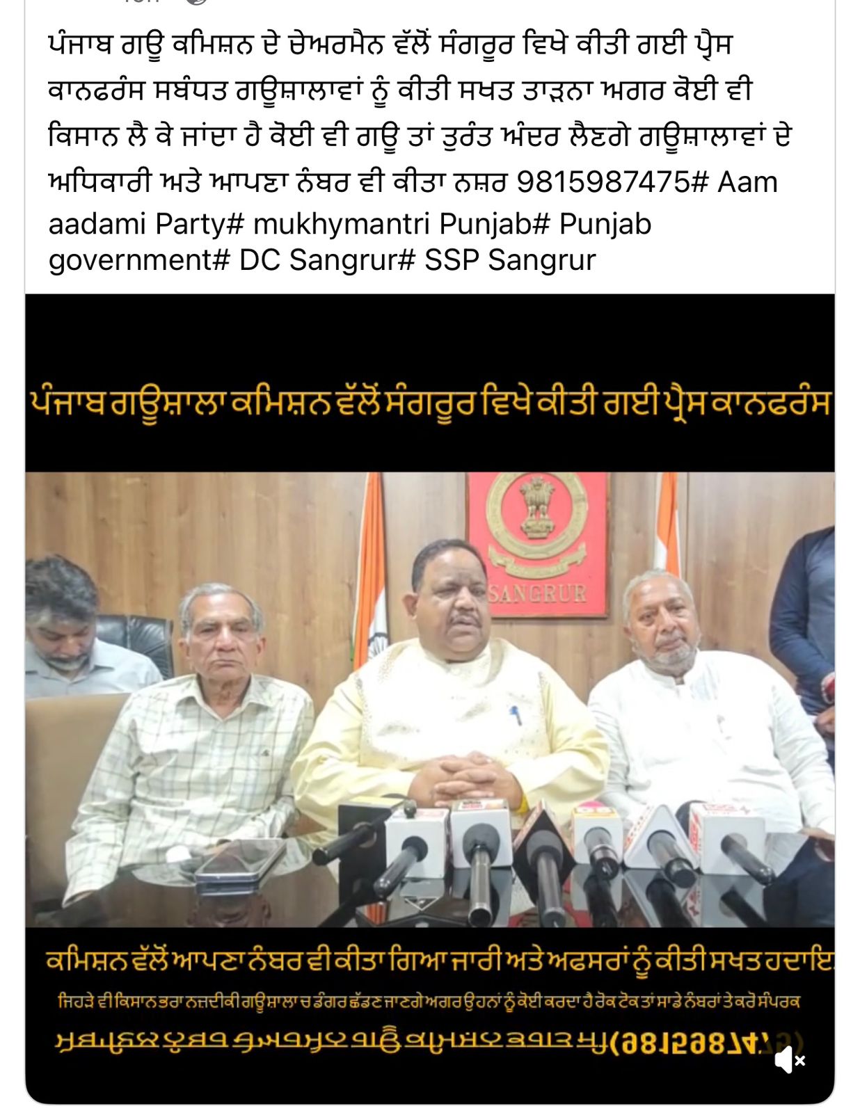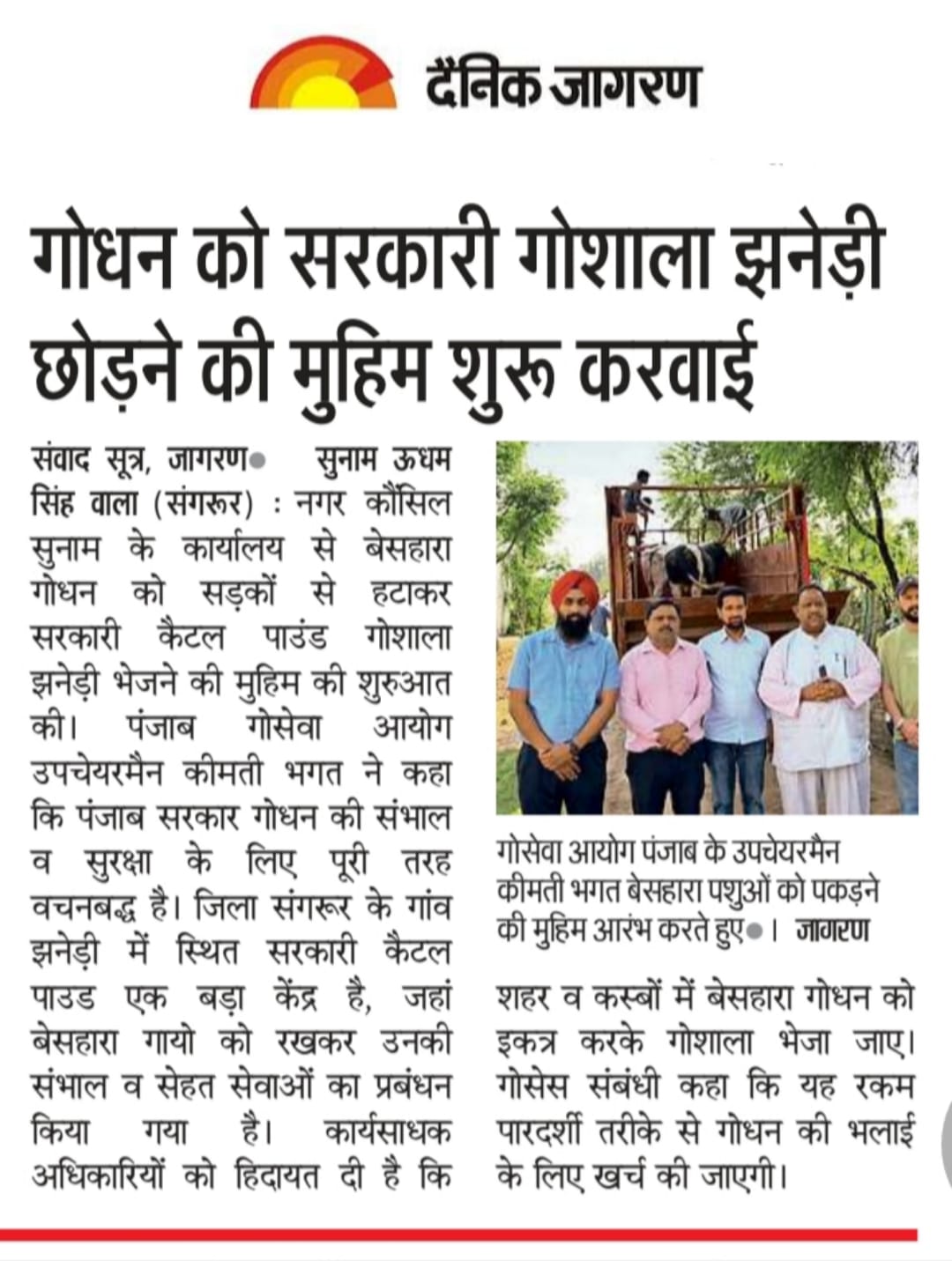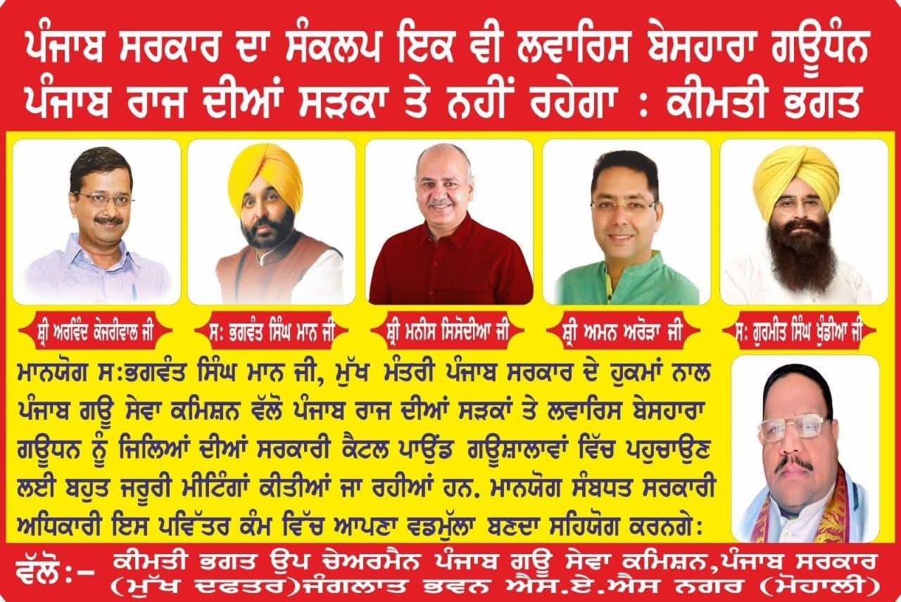 ਉਪ ਚੇਅਰਮੈਨ ਕੀਮਤੀ ਭਗਤ ਜੀ ਵੱਲੋ ਗਊਧੰਨ ਦੀ ਸੇਵਾ ਸੰਭਾਲ ਅਤੇ ਸੁਰੱਖਿਆ ਅਤੇ ਜਿਲ੍ਹਾ ਸੰਗਰੂਰ ਦੇ ਕੈਟਲ ਪਾਊਂਡ ਸਰਕਾਰੀ ਗਉਸ਼ਾਲਾ ਦਾ ਦੌਰਾ ਕਰਨ ਸਬੰਧੀ।