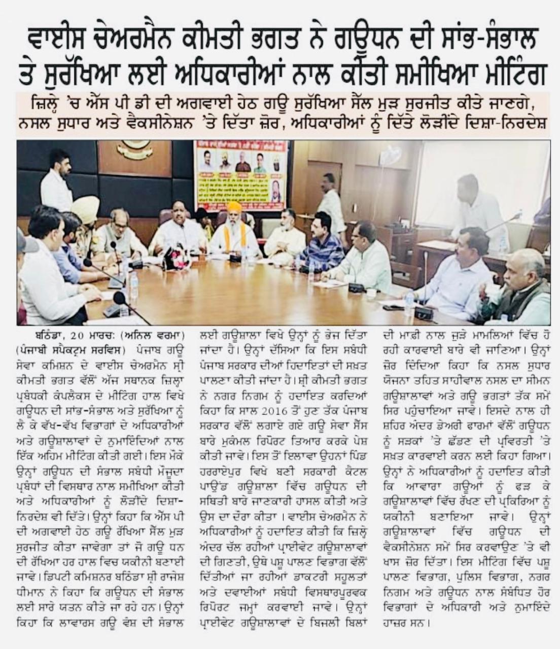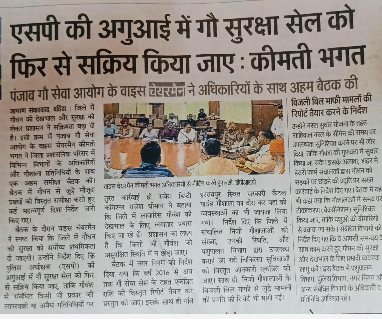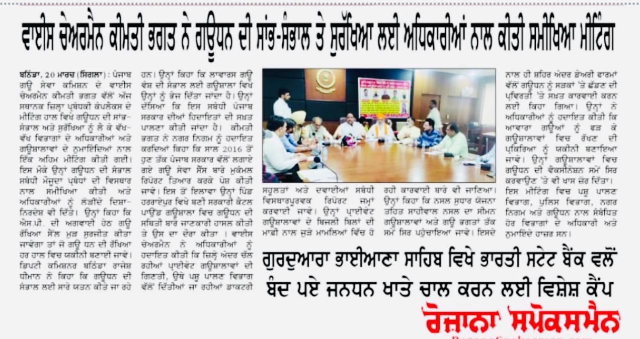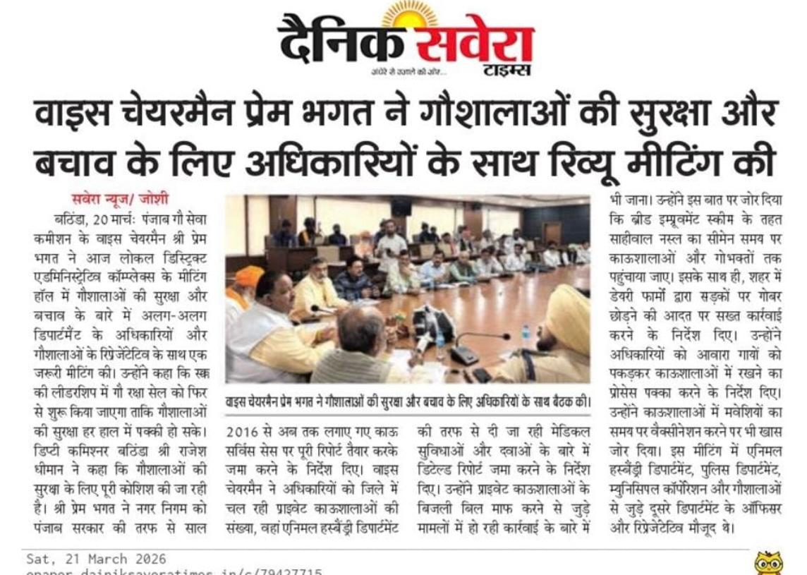 ਗਊਧਨ ਦੀ ਸਾਂਭ-ਸੰਭਾਲ: ਚੇਅਰਮੈਨ ਸਾਹਿਬ ਨੇ ਬੇਸਹਾਰਾ ਗਊਧਨ ਦੀ ਸਹੀ ਸਾਂਭ-ਸੰਭਾਲ ਅਤੇ ਗਊਸ਼ਾਲਾਵਾਂ ਦੀ ਮੌਜੂਦਾ ਸਥਿਤੀ ਬਾਰੇ ਅਹਿਮ ਜਾਣਕਾਰੀ ਸਾਂਝੀ ਕੀਤੀ।